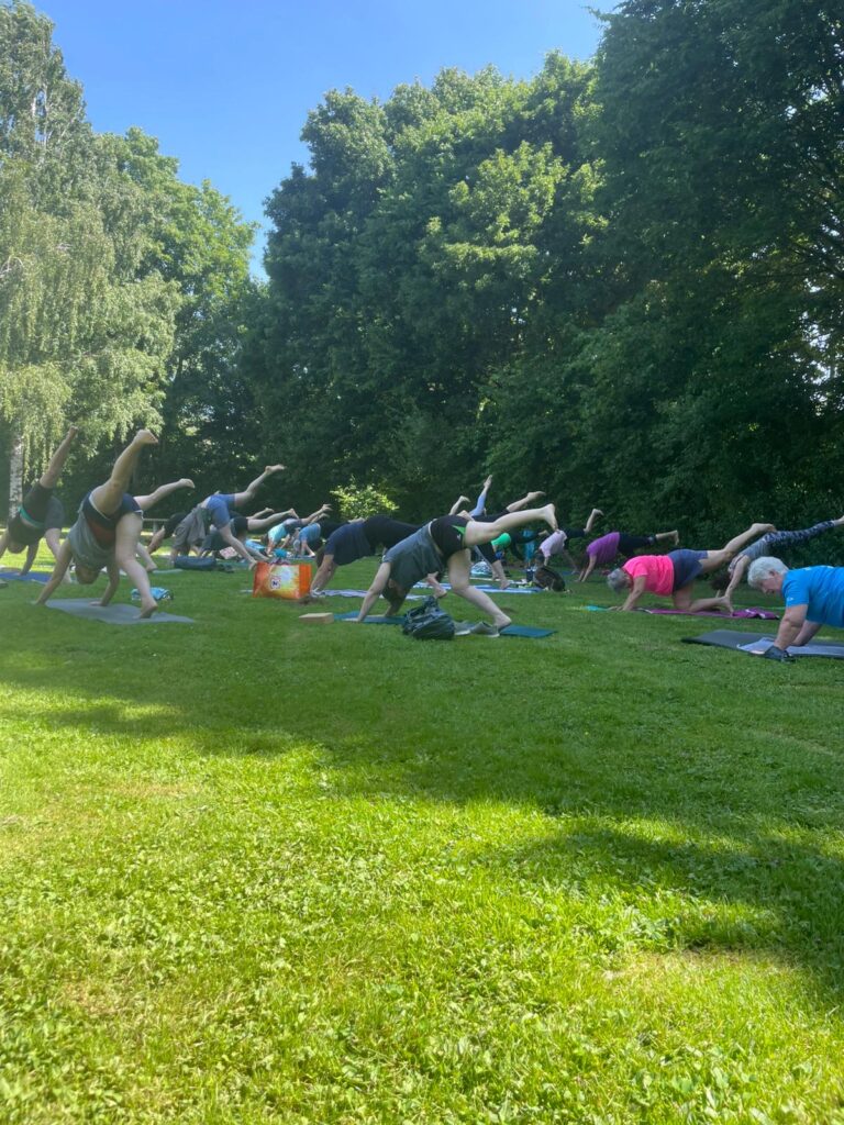 Ein besonderes Highlight war in diesem Jahr das Yoga im Freibad. Über die Saison hinweg nahmen im Schnitt um die 30 Personen jeden Sonntag teil, viele von ihnen kamen eigens wegen dieses besonderen Angebots. Die Atmosphäre am Morgen, wenn die Sonne langsam über die Bäume steigt und man in Ruhe Yoga auf der Wiese unter offenen Himmel machen kann, war einfach einzigartig.