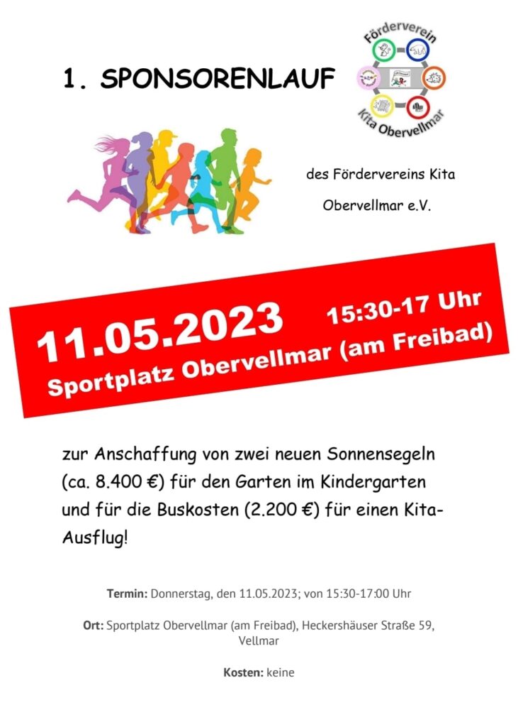 kommt und unterstützt den Spendenlauf der Kita Kinder Obervellmar. Feuert sie kräftig an, esst eine Bratwurst oder Kuchen. Lasst Euch dieses Spektakel nicht entgehen!