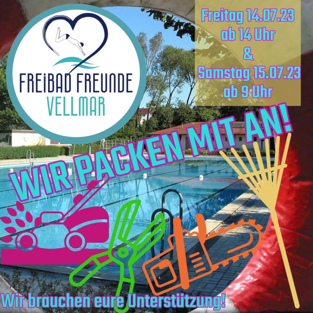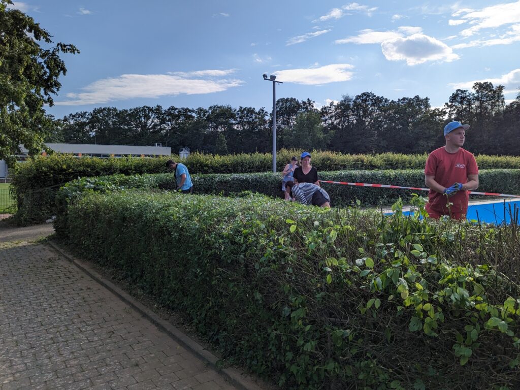 Mit zwei Arbeitseinsätzen am 14. und 15.07.2023 konnten wir die Stadt Vellmar in diesem Jahr nun erstmals ganz konkret auf dem Weg zur Eröffnung des Freibades durch das Schneiden der Hecken unterstützen.